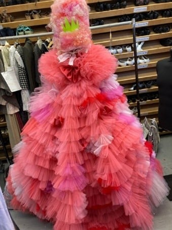Das Kostüm der Prinzessin aus der Oper „Der gestiefelte Kater“ wird nicht umsonst als „Tüllbombe“ bezeichnet: Fast 80 m Tüll in verschiedenen Rosé- und Pinktönen wurde in den hier übereinandergesetzten Tüllrüschen verarbeitet.